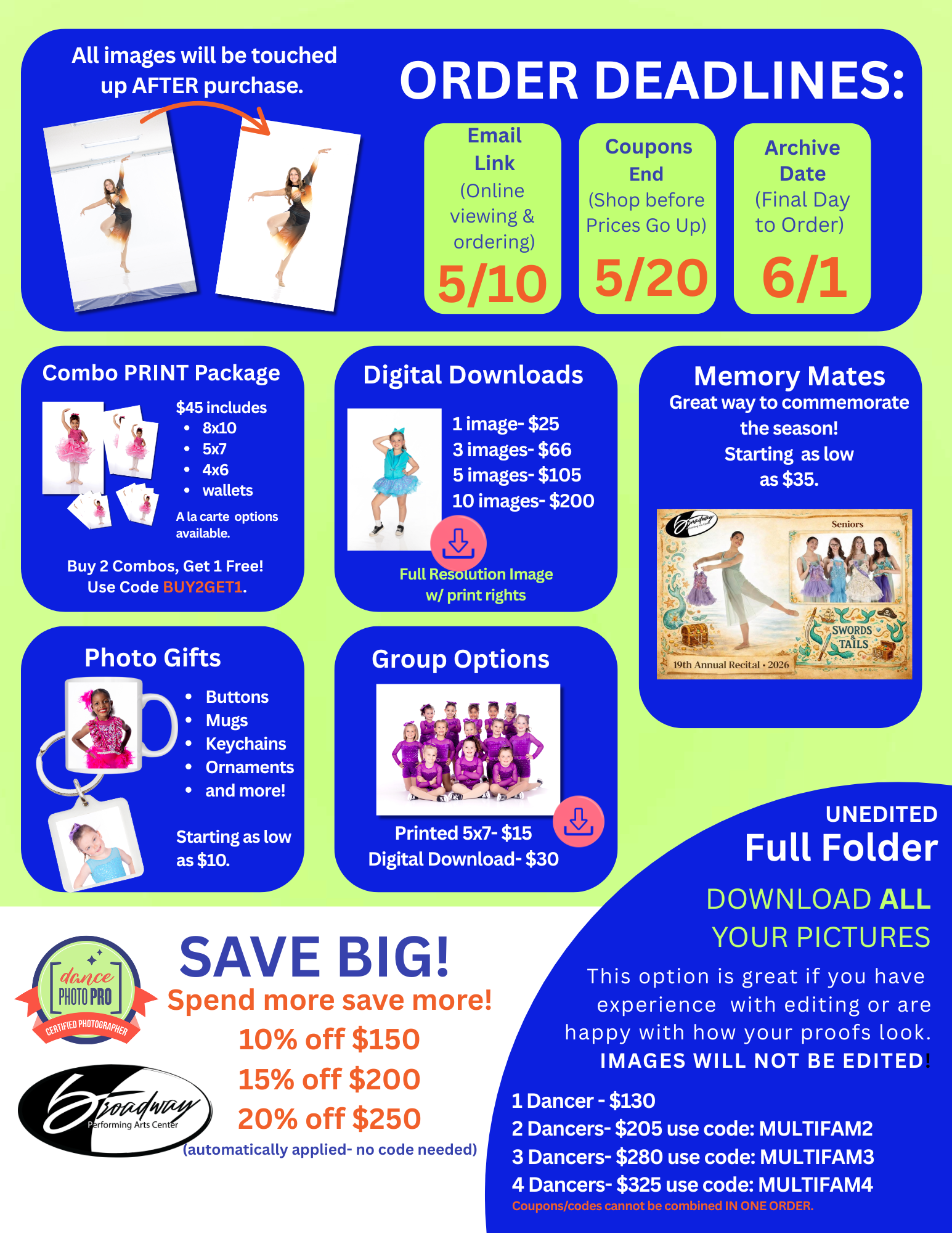 Your dancers will be photographed by the same familiar faces they see every week at the studio. We know them, we cheer them on, and we can’t wait to capture the personality, confidence, and magic they bring to class.
