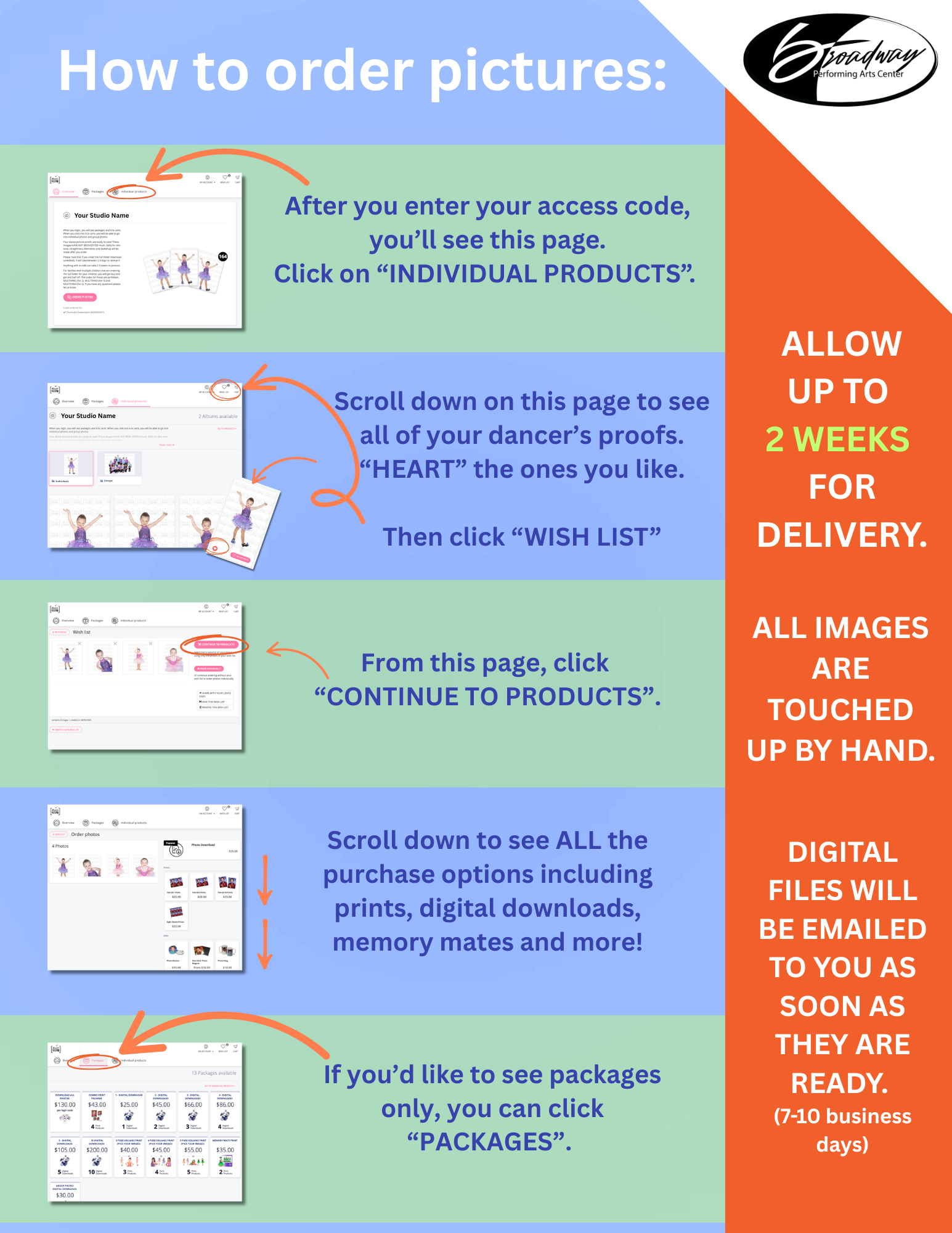 Our staff has been professionally trained in artistic dance and volume photography to make sure you receive beautiful, high-quality images with a smooth and professional process.